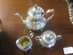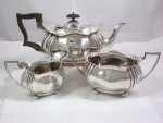 Antique 1902 Sterling Silver Oval Fluted Tea Pot, Sugar Bowl & Milk Jug Tea Set