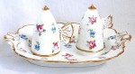 C19TH MINTON HAND PAINTED CANDLE SNUFFERS AND STAND