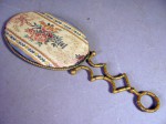 Antique French Bronze Brass Tapestry Hand Mirror 19th Century