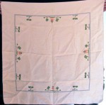 Vintage 1920s Linen Square Card Table Cloth Pagoda Motif Embroidered