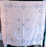Vintage 1920 White Linen Bridge Card Table Cloth w Blue Gray Emboidery