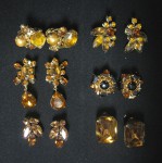 Vintage Retro Topaz Amber Rhinestone Earrings All Clip Ons
