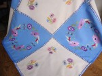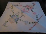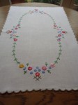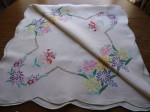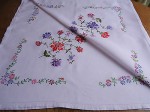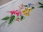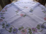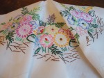 VINTAGE HAND EMBROIDERED FLORAL LINEN TABLECLOTH
