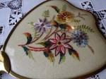 VINTAGE BEAUTIFUL FLORAL EMBROIDERED VANITY HAND MIRROR