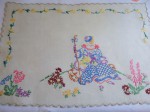 Vintage Linen Tablecloth & Napkins Cross-stitch Embroidery
